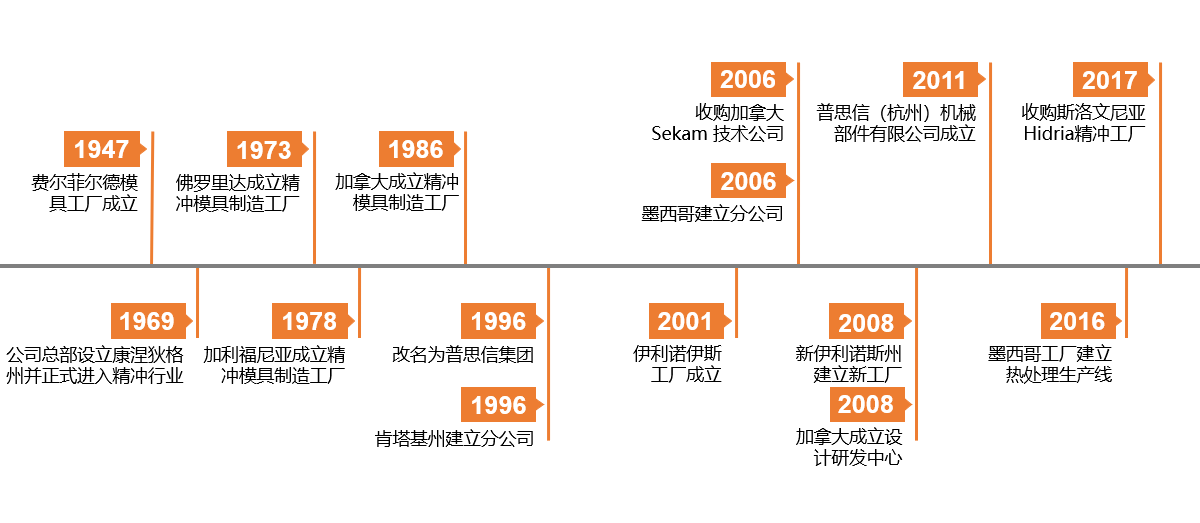 普思信集团是一家私有的精冲制造加工商,在美国、加拿大、墨西哥、斯洛文利亚以及中国布局了生产工厂。企业成立至今, 我们一直秉承着可靠服务、与客户密切合作的理念和责任。通过在新的技术和能力方面持续的投入和全球化的布局,伴随着其客户全球化的步伐,普思信自身也不断成长壮大,并已成为其在全球的可靠供应商。